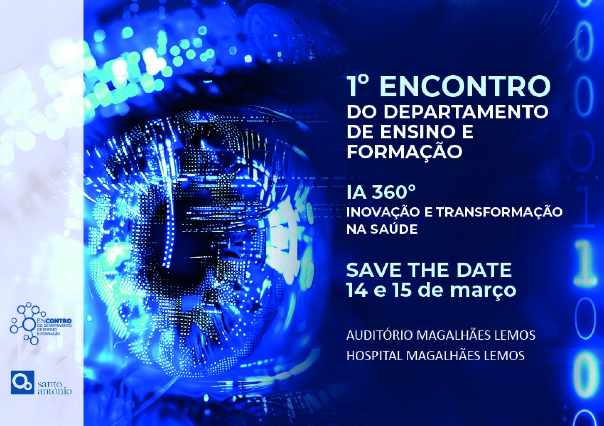 O 1º Encontro do Departamento de Ensino e Formação (DEFI) da ULS de Santo António vai decorrer no Auditório Magalhães Lemos – Hospital de Magalhães Lemos, nos dias 14 e 15 de março com o tema “IA 360º: Inovação e Transformação em Saúde”.