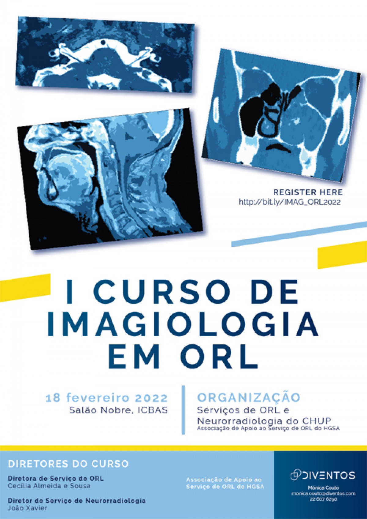 O I Curso de Imagiologia em ORL, realiza-se no dia 18 de fevereiro, no Salão Nobre do Instituto de Ciências Biomédicas Abel Salazar (ICBAS).