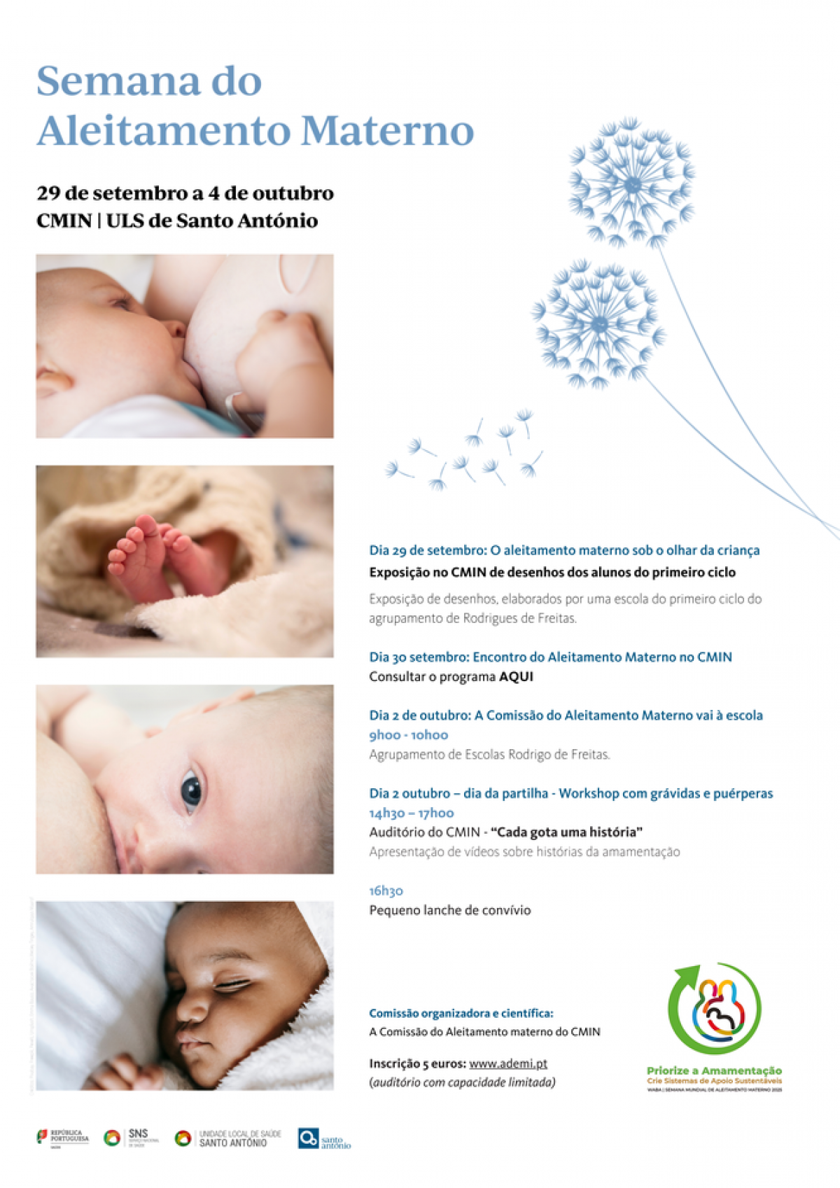 A Semana do Aleitamento Materno irá decorrer entre os dias 29 de setembro e 4 de outubro de 2025 no Auditório do CMIN.