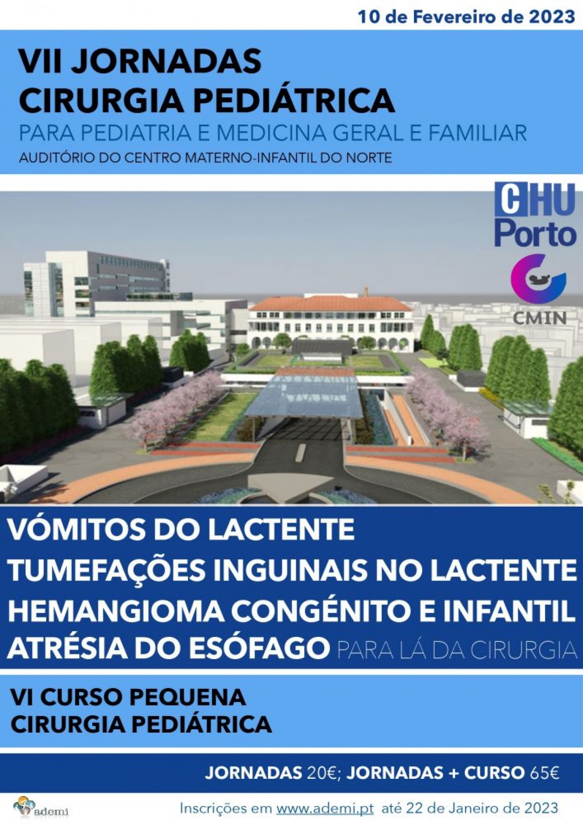 No próximo dia 10 de fevereiro de 2023 realizam-se as VII Jornadas de Cirurgia Pediátrica para Pediatria e Medicina Geral e Familiar e o VI Curso de Pequena Cirurgia.