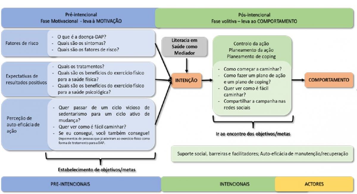 A doença arterial periférica (DAP) é uma doença cardiovascular comum que afeta 27 milhões de pessoas na Europa e nos Estados Unidos da América (EUA). Os doentes com DAP apresentam habitualmente, como primeiro sintoma, um grave comprometimento da capacidade funcional, nomeadamente na distância percorrida devido à isquemia muscular definida como claudicação intermitente (CI). O desconforto relacionado à CI contribui para um estilo de vida sedentário, diminuindo o nível de aptidão física, potencializando os fatores de risco cardiovascular, aumentando as taxas de perda de mobilidade, levando à deterioração da doença. O declínio funcional significativo em doentes com DAP está associado à gravidade da CI, que, por sua vez, está correlacionada com maior morbidade, redução da qualidade de vida (QV) e aumento da mortalidade. Em última análise, a DAP pode levar à amputação de membro inferior. Além da medicação oral, o exercício físico tem sido recomendado como terapia de primeira linha para doentes com DAP e CI melhorando a capacidade de deambulação, o estado funcional e a QV relacionada à saúde. No entanto, as taxas de adesão à recomendação de exercício físico são baixas. Um dos principais fatores que contribui para a não adesão ao tratamento da Doença Arterial Periférica (DAP) reside na falta de conhecimento e consciência sobre a gravidade e severidade da doença. O primeiro estudo que se focou em avaliar a Consciência sobre a DAP – (“The National PAD Public Awareness Survery”) – foi conduzido nos Estados Unidos EUA em 2006 e revelou que 75% dos entrevistados desconheciam a doença, os outros 25 % eram detentores de um mínimo de informações corretas, e apenas 14 % sabiam que a doença pode levar à morte.