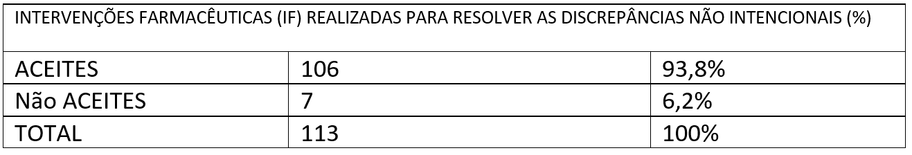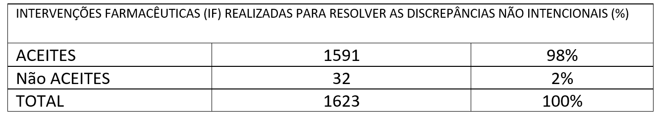 Os dados recolhidos permitem observar que, quando a primeira prescrição médica é feita a partir da BPMH, em estreita colaboração com o farmacêutico, o número de discrepância não intencionais diminui drasticamente.